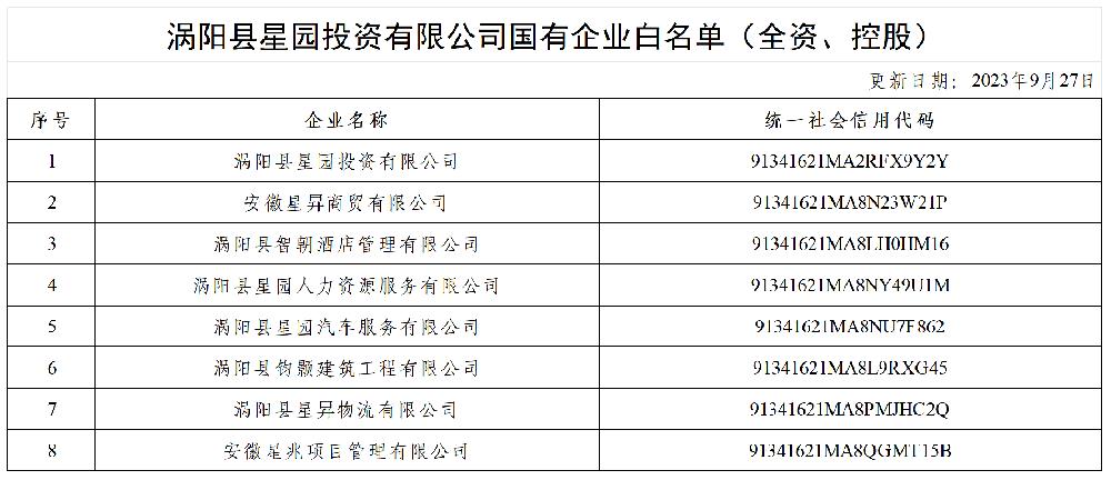古天乐太阳集团城国有企业白名单(全资、控股)
